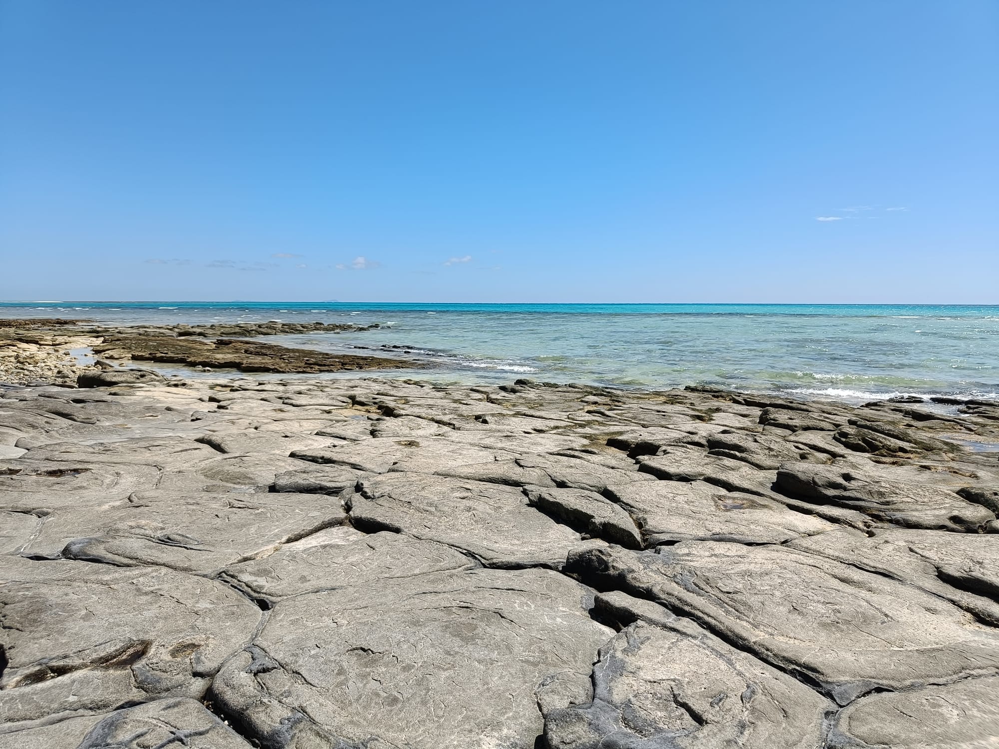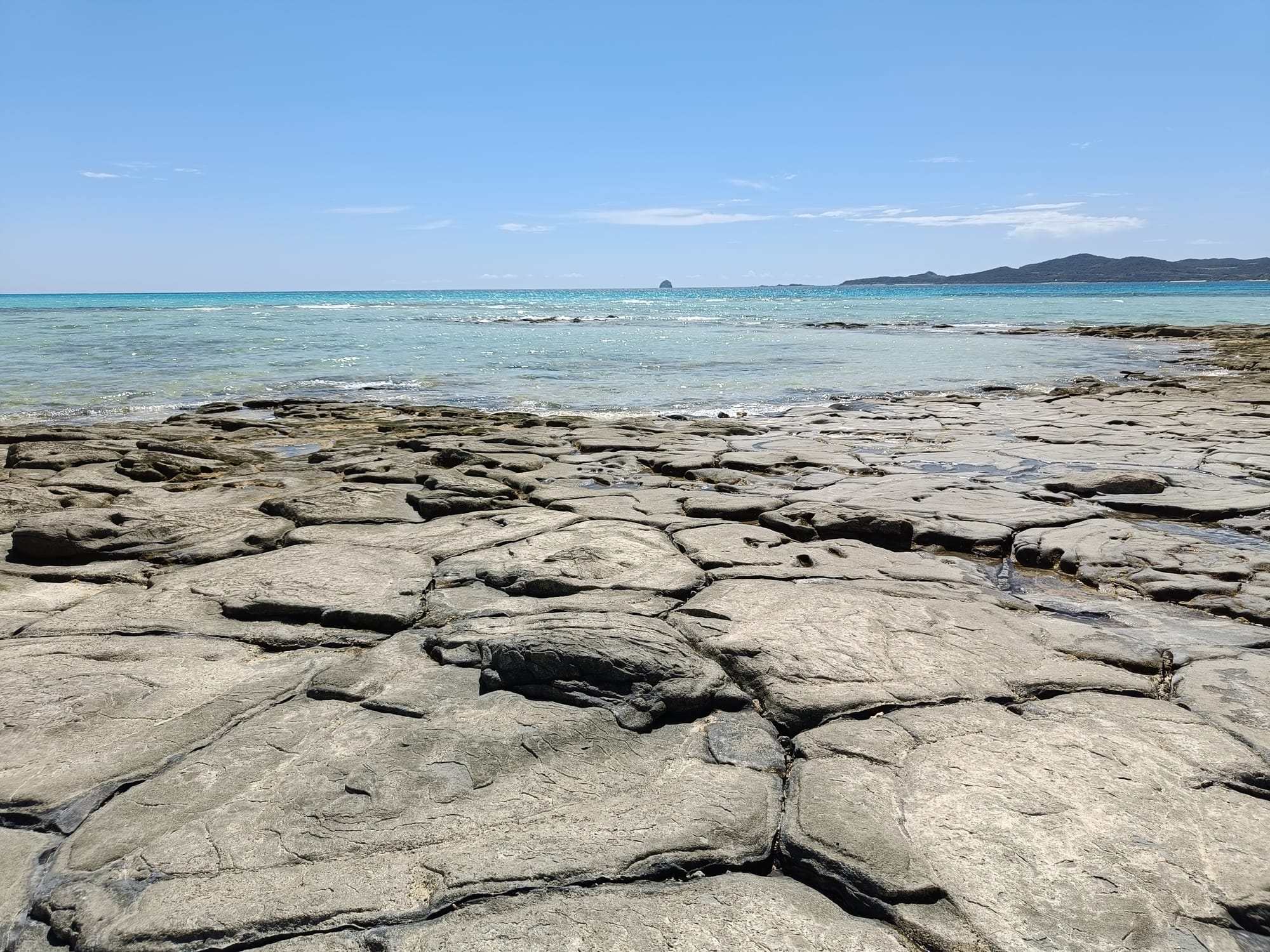 ここは、数年前に見た夢の中で訪れた場所によく似ている。初めて畳石の写真を目にした時には、「え!」と思わず声をあげて驚いたほどだった。その夢の中では、浜辺に無数に並んだ六角形の石のひとつひとつの真ん中に、現地の神である半人半魚の化石のような形/紋章が浮かび上がっていた。