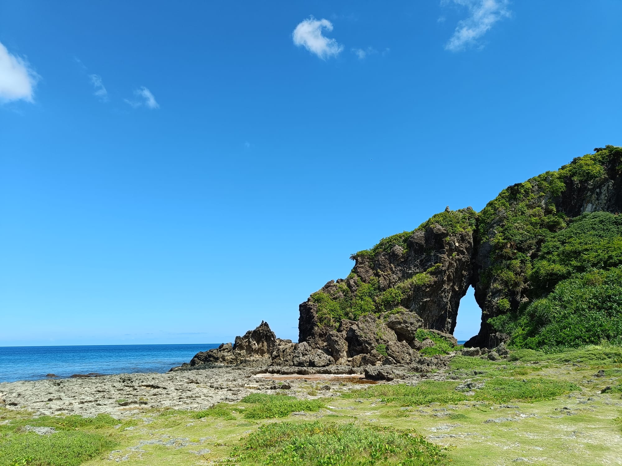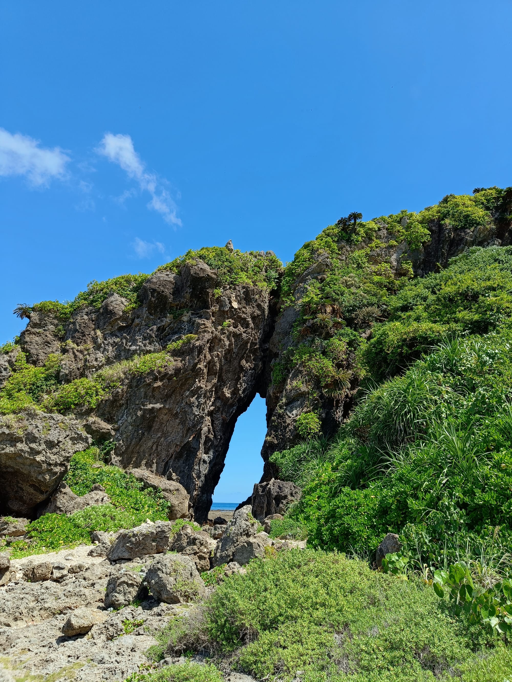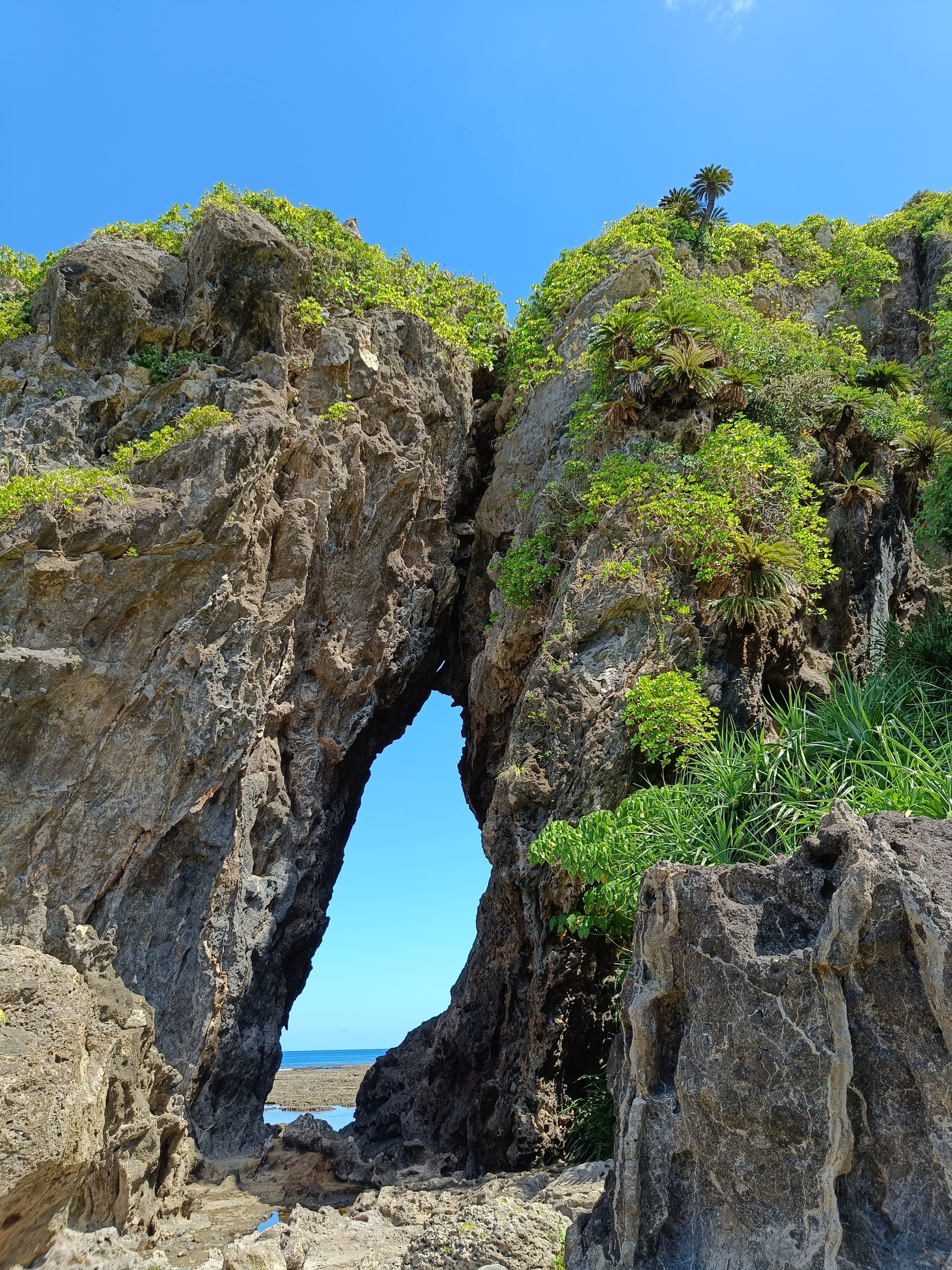 久米島の北側にある大和泊海岸には、「ミーフガー」と呼ばれる奇岩が聳えたっている。一見すると巨大な岩に穴が空いているように見えるが、海側の琉球石灰岩と陸側の凝灰角礫岩が、約400万年前にぶつかって形成されたといわれている。火山活動が作り出した特徴的な形をした岩と、青い海と空、そして濃淡さまざまな緑に囲まれた、不思議と居心地のいい静かな場所。 Share