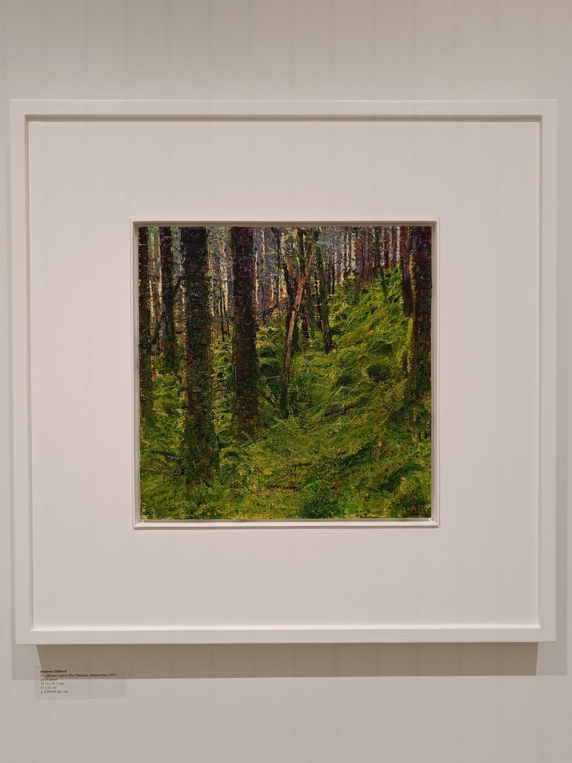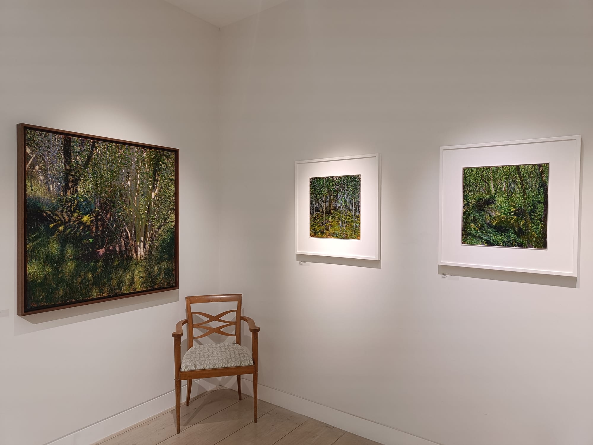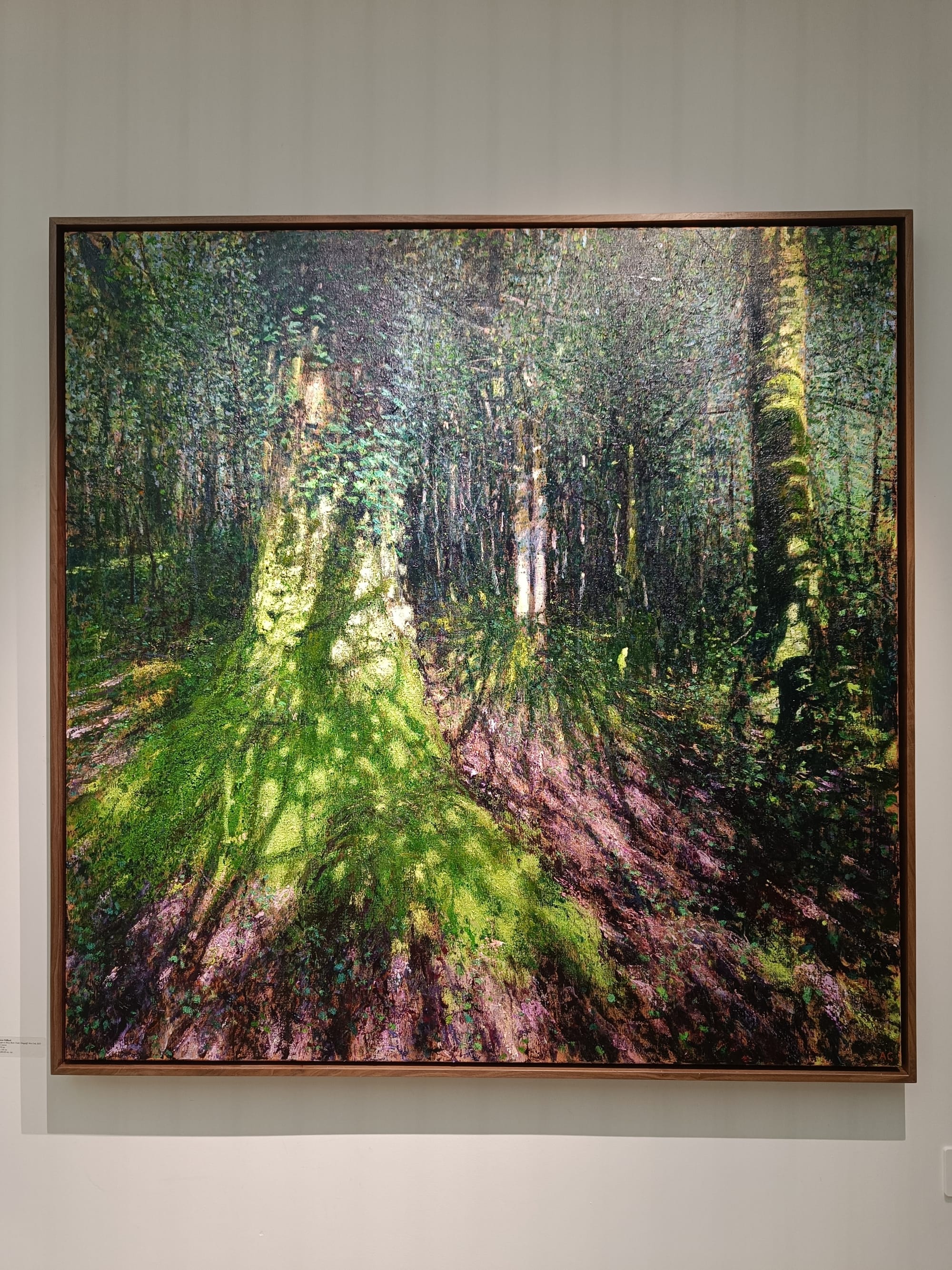 ロンドン滞在最終日には、Andrew Giffordのシリーズ作品『Moss Light』を見るために、John Martin Galleryを訪れた。実際の作品はやはりPC画面上で見るのとはまったく異なり、その前に立っていると、まるで自分が絵の中の木漏れ日に包まれているような錯覚に陥り、足を踏み出せば落ち葉の感触が足に伝わり、周囲からは木々や苔や土の香りが漂ってくるかのように感じられた。