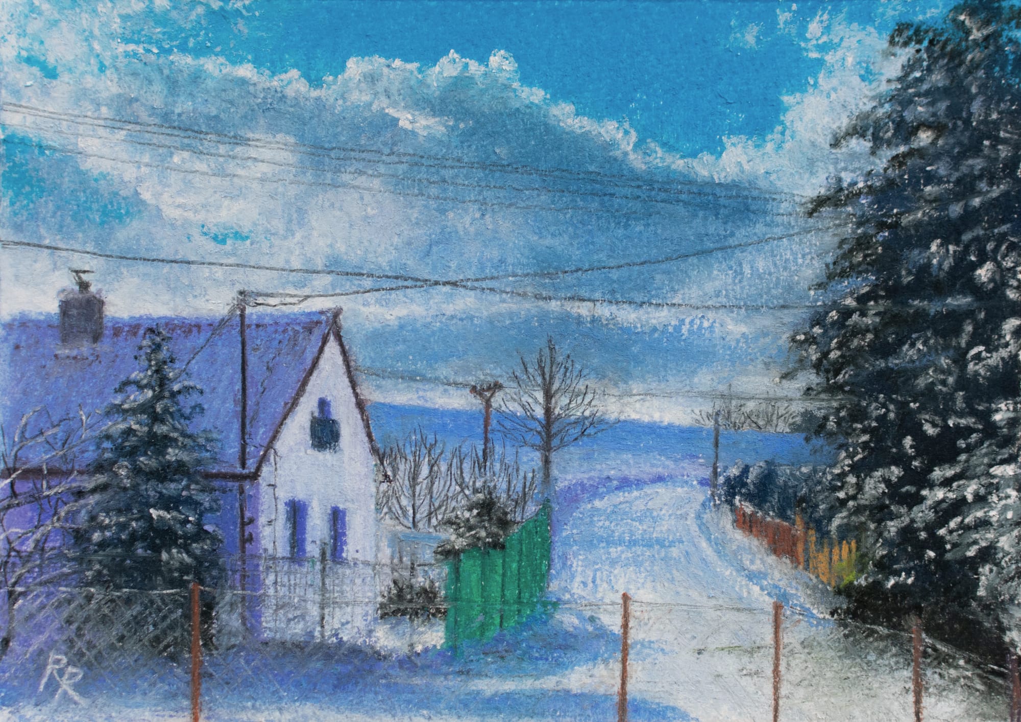Snowy Landscape, Bečice, South BohemiaPastel on cold-pressed watercolor paper, 14.8 x 21.0cmReference photo by Jan Jiránek同じ地域に住んでいるJiránekさんが先日投稿された写真がとても素敵だったので、パステルでまた一つ小さな絵を描いた。南ボヘミア、Bečiceの雪景色。水彩紙の質感と効果はなかなかおもしろいので、他と並行してこうした小さい絵も描いていこうと思う。 Share