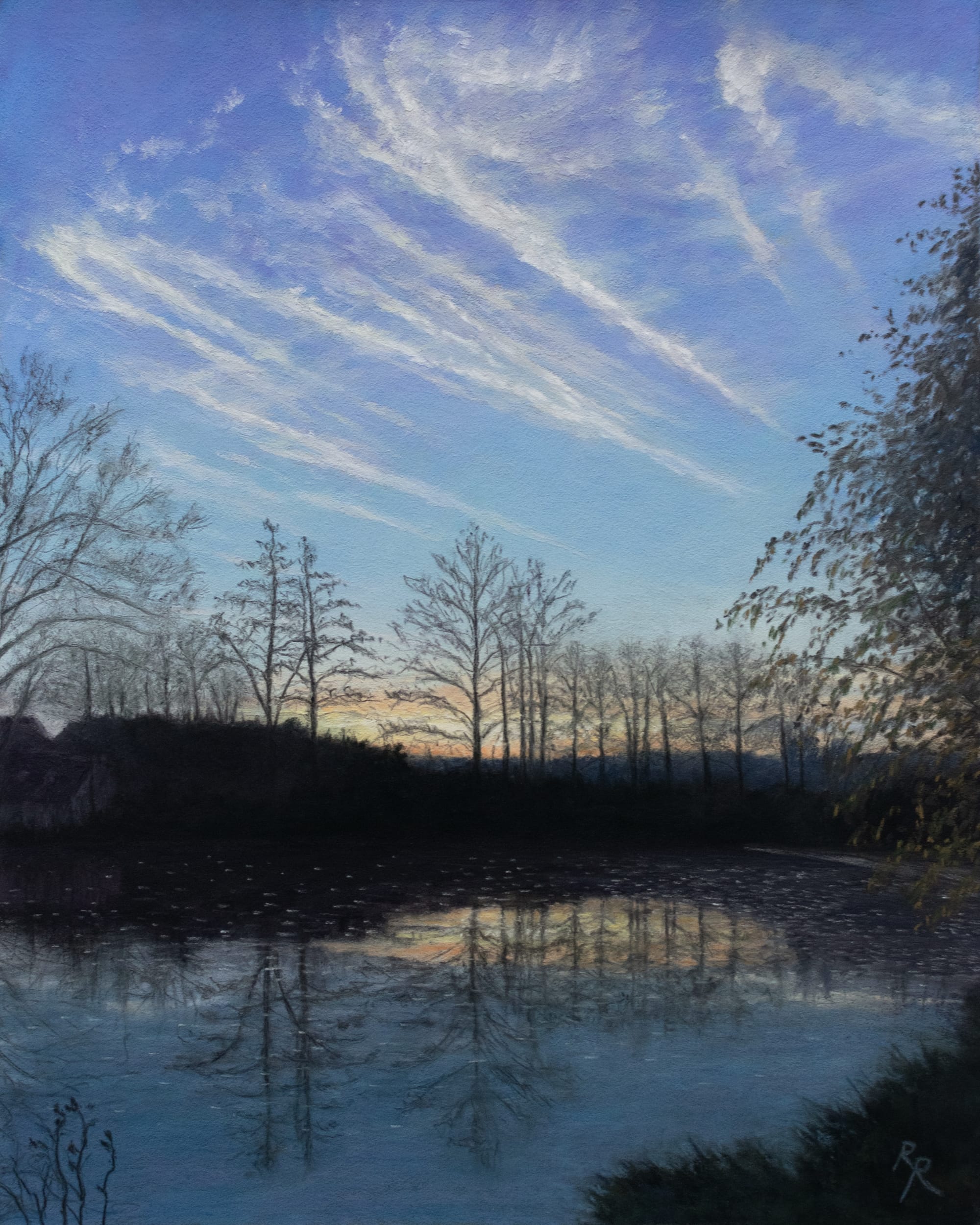 Sunset over the River Lužnice (that place we often walked together)Pastel on Pastelmat 24x30 cm Share