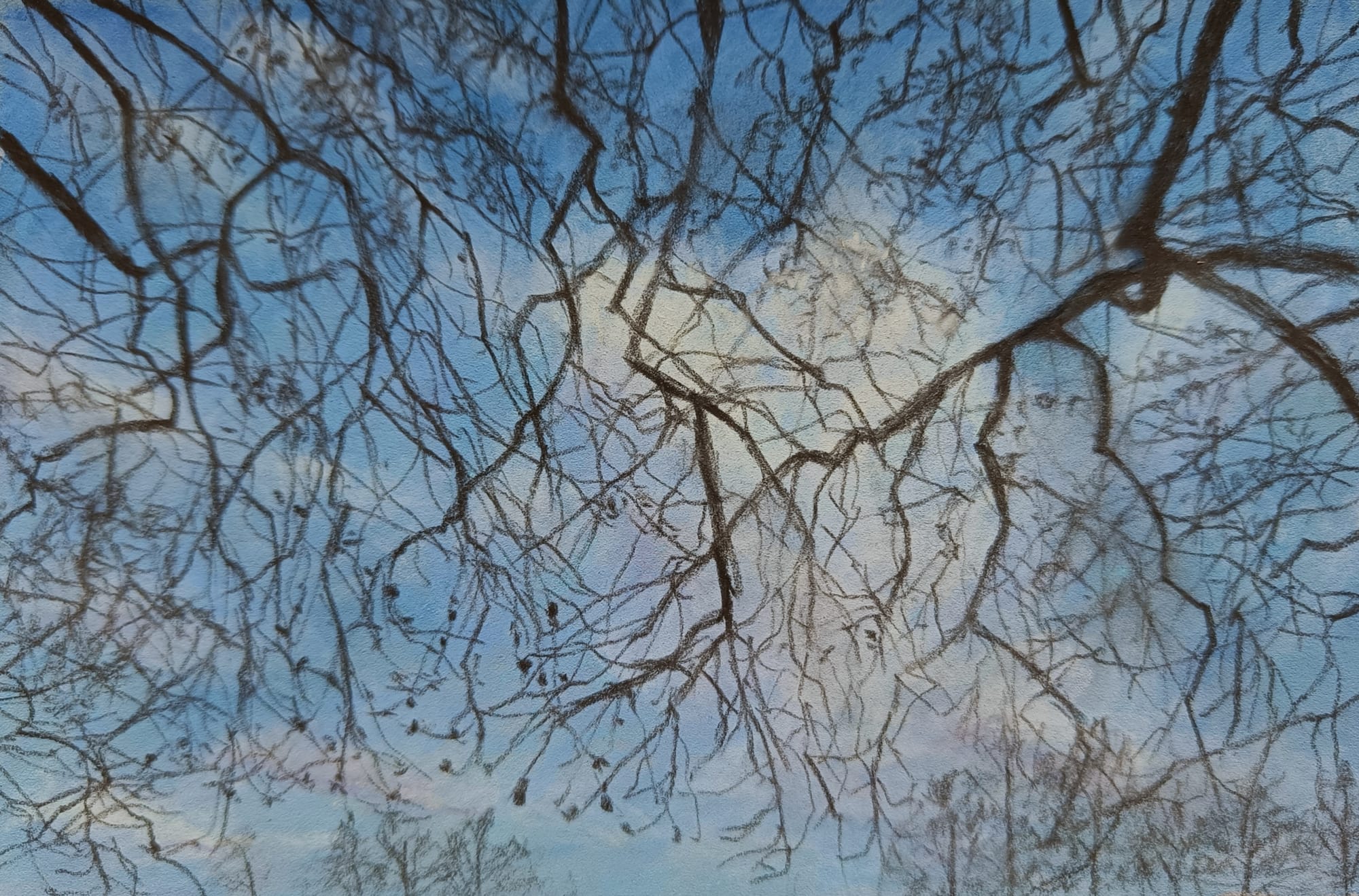 水彩紙に水彩色鉛筆、パステルペンシル、チャコール